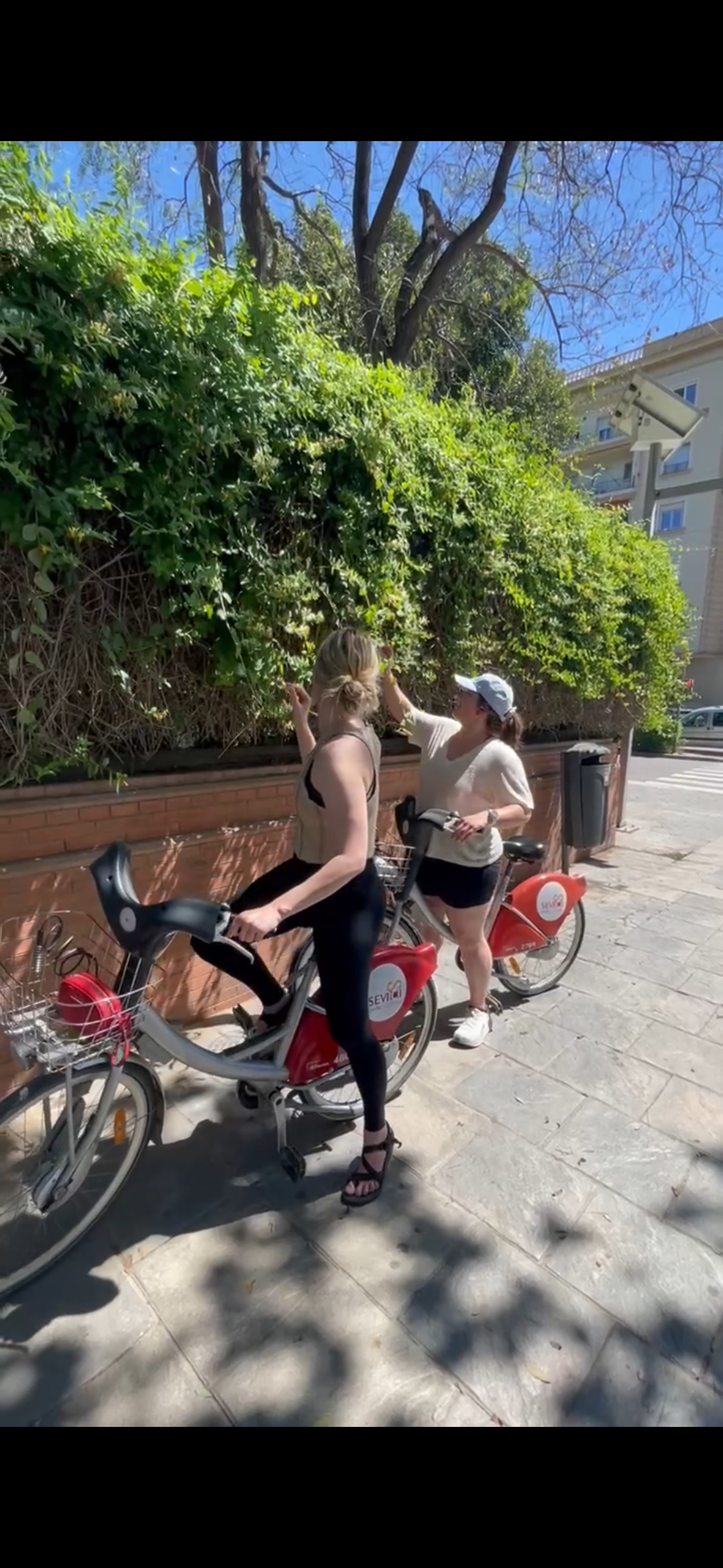 Biking through Seville, Spain (taking a moment to pick some Honeysuckle)